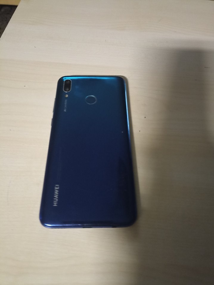 Huawei marka koyu mavi renkte, arka parmak izi sensörü ve çift kameraya sahip Android telefon.