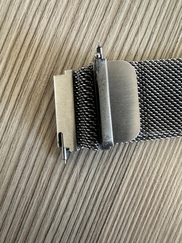 Gri renkli erkek saat kayışı, minimalist ve çağdaş tasarıma sahip. Metal örgü dokusu ve güvenli toka ile rahat kullanım sağlar. ⌚