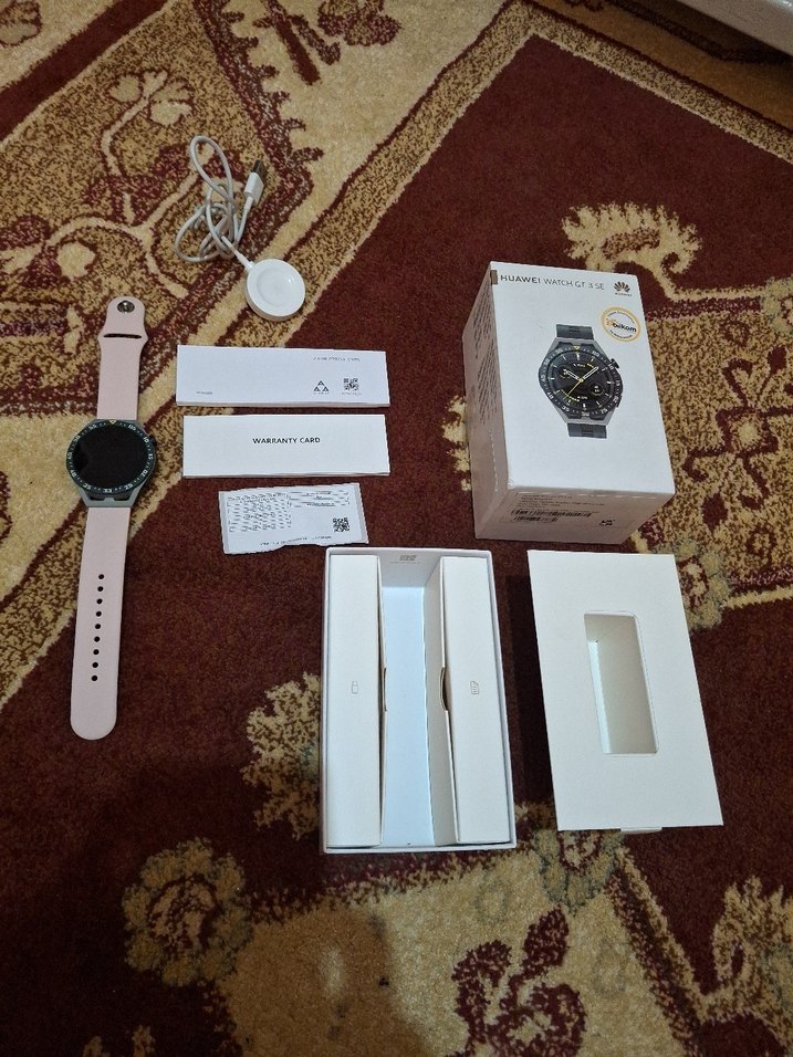 huawei watch gt 3 se akıllı saat kutu içeriği tam garanti belgesi yok kayboldu saat kozmetik 10/9.9 kordonu değiştirme imkanım olmadı siz değiştirebilirsiniz kullanmadığımdan dolayı satılık hem ios hemde android uyumlu müzik depolaması mevcut müzik dinleyebiliyorsunuz şarjı efsane 7/14 gün arası dayanıyor en iyi olduğu konu spor egzersiz tamı tamına en doğru değerleri veriyor 50 metreye kadar suya dayanıklı havuz vb ardından boşalt seçeneği ile içindeki suyu boşaltıyor çok temiz bir akıllı saat ayrıca oyun dahi oynanabiliyor uygulaması Huawei Sağlık üzerinden indirip müzik yükleme vb uygulamadan yapıyorsunuz sıfırlayıp göndereceğim paketlemesini yapacağım kaçırmayın tertemiz cihaz teklifler değerlendilir
