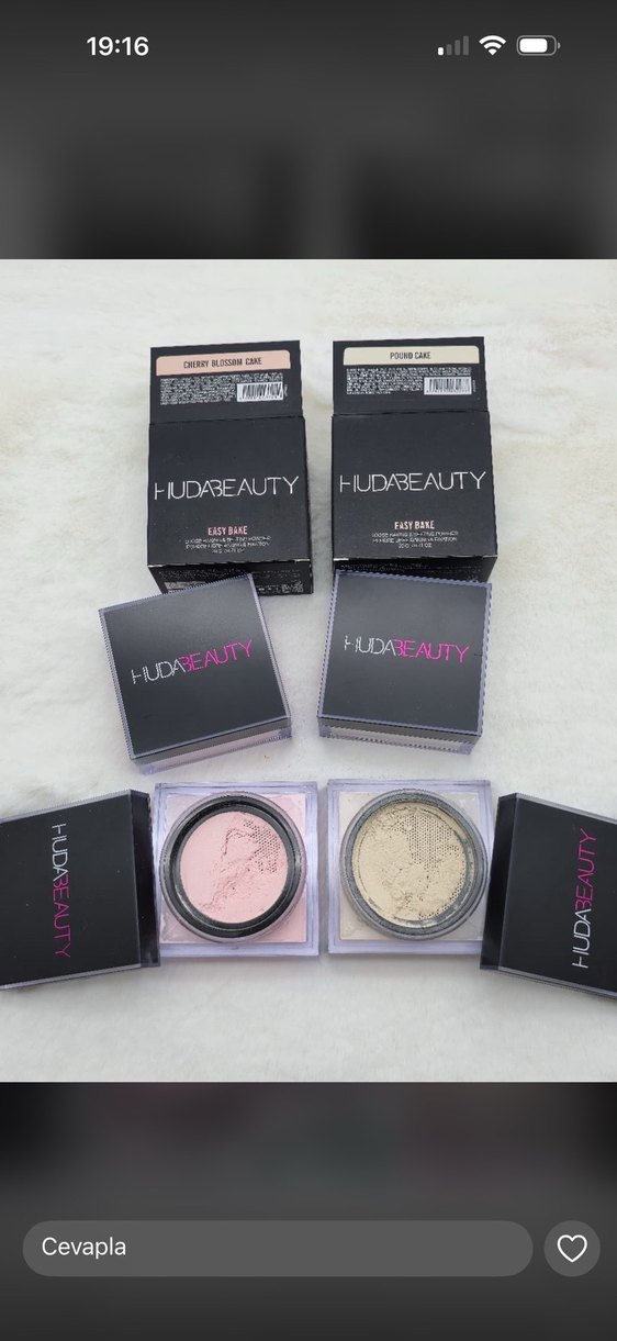 Huda Beauty markasına ait açık bej tonlarında iki çeşit sedefsiz pudra, makyajda pürüzsüz bir görünüm sağlar.
