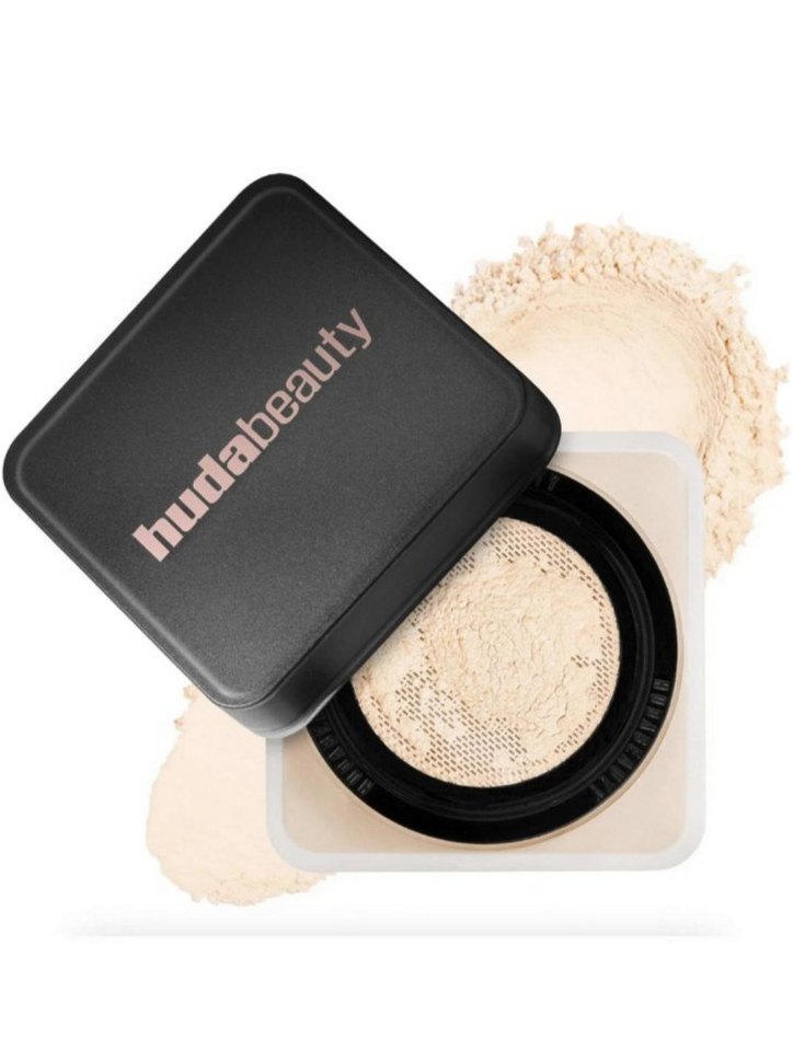 Huda Beauty markasına ait açık bej renginde, yumuşak dokulu gevşek pudra.