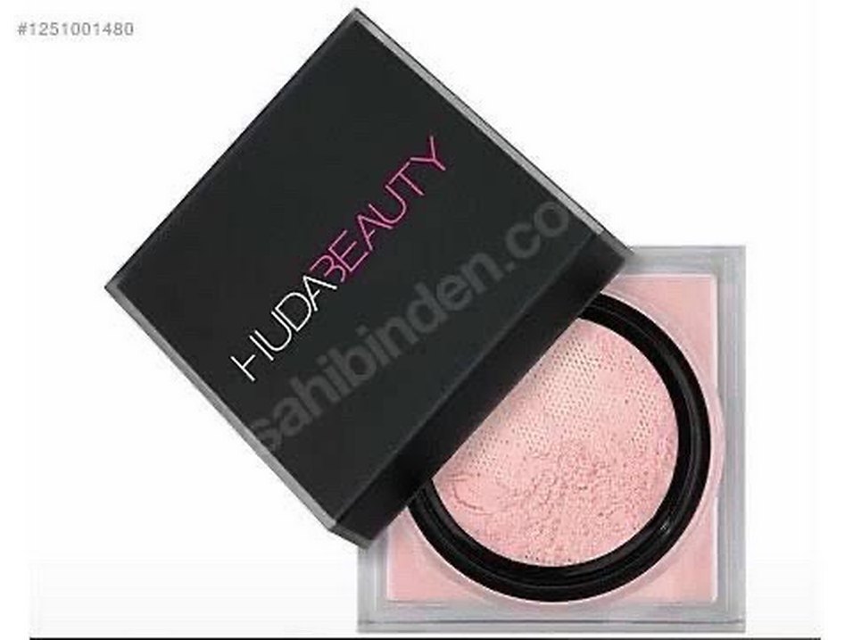 Huda Beauty'nin açık pembe, yumuşak dokulu pudrası. Üzerinde "ahibinden.cc" yazısı bulunur.