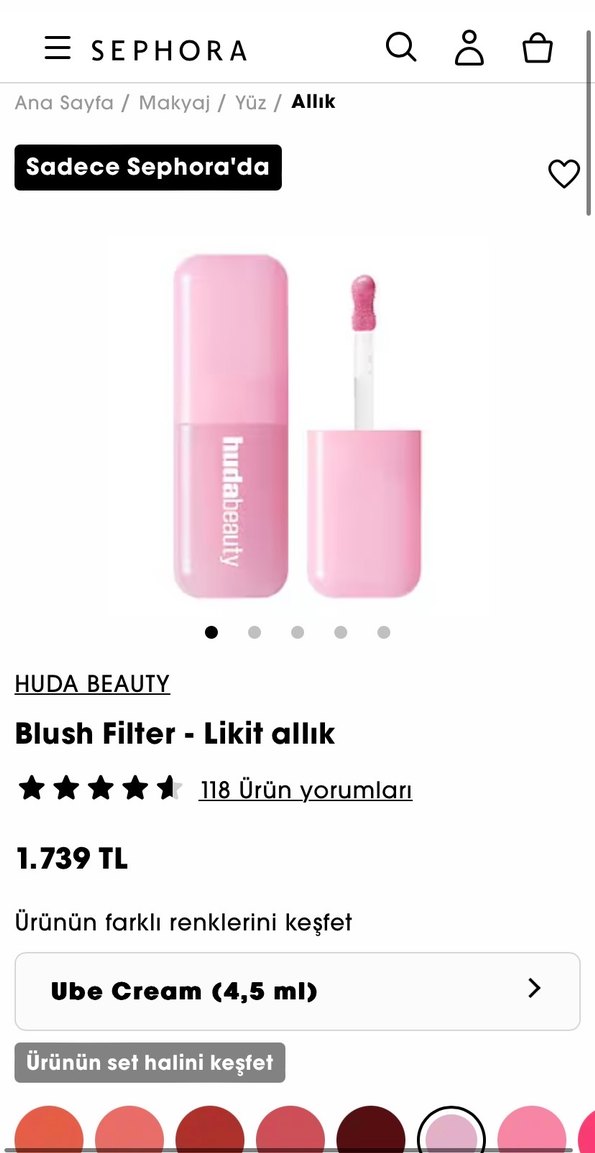 HUDA BEAUTY Blush Filter likit allık, yumuşak pastel pembe renk. Uygulama aparatı ile kolay kullanım sunar, sadece Sephora'da satılır.