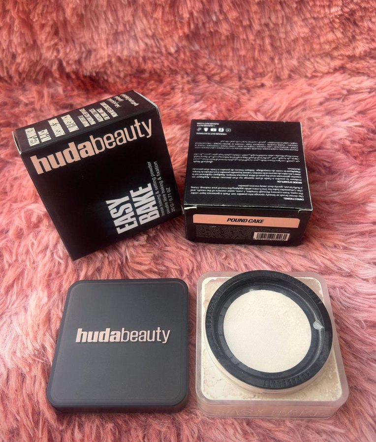 Huda Beauty Easy Bake pudra koyu bej tonunda, pürüzsüz bitiş ve kalıcı kullanım sağlar. Kompakt kutuda ve ambalajıyla birlikte gelir. ✨