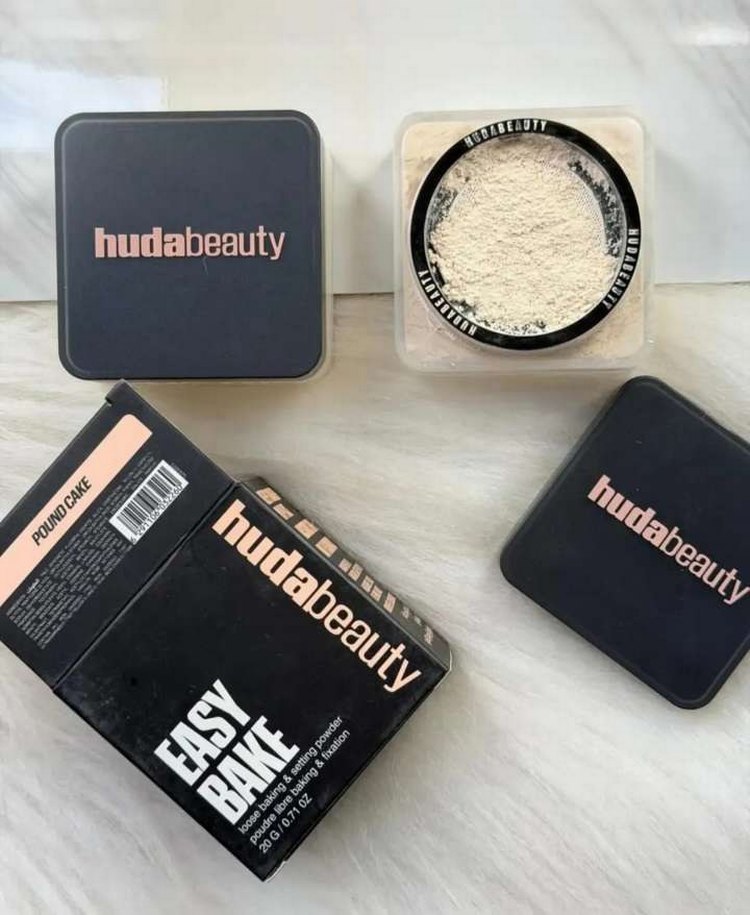 Huda Beauty Easy Bake bej renkte, makyajda pürüzsüz ve kalıcı bir görünüm sağlar. Kompakt kapaklı kutuda sunulur.