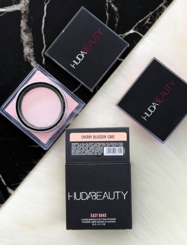 Huda Beauty Easy Bake, hafif pembe tonunda Cherry Blossom Cake adlı pudra. Makyaj sabitlemek için pürüzsüz bir bitiş sağlar.