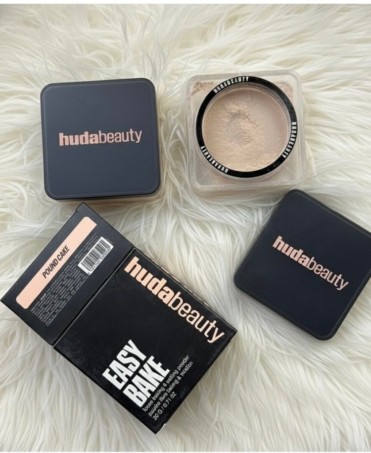 Huda Beauty Easy Bake koyu bej renkte, ciltte pürüzsüz bitiş sağlayan ince yapılı pudra. Kare kutuda ve sağlam kapaklıdır.