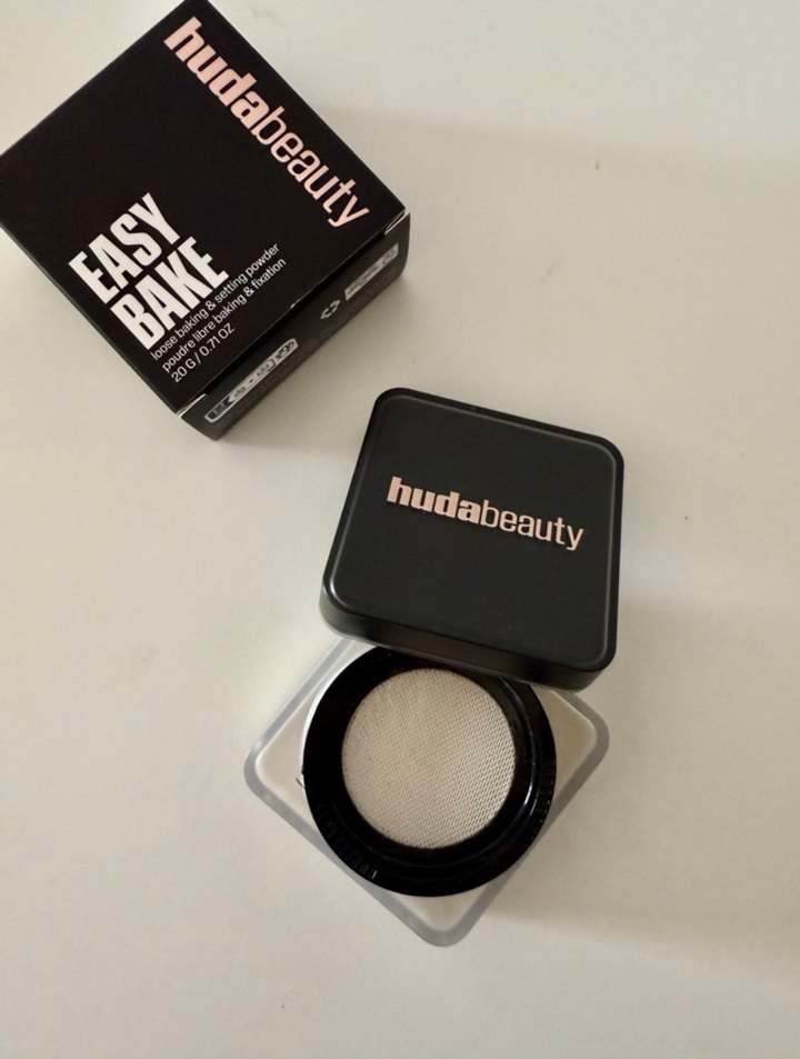Huda Beauty Easy Bake pudra, koyu bej tonunda, pürüzsüz bir makyaj görünümü sağlar. Kolay uygulama için elekli kompakt kutuda sunulur.