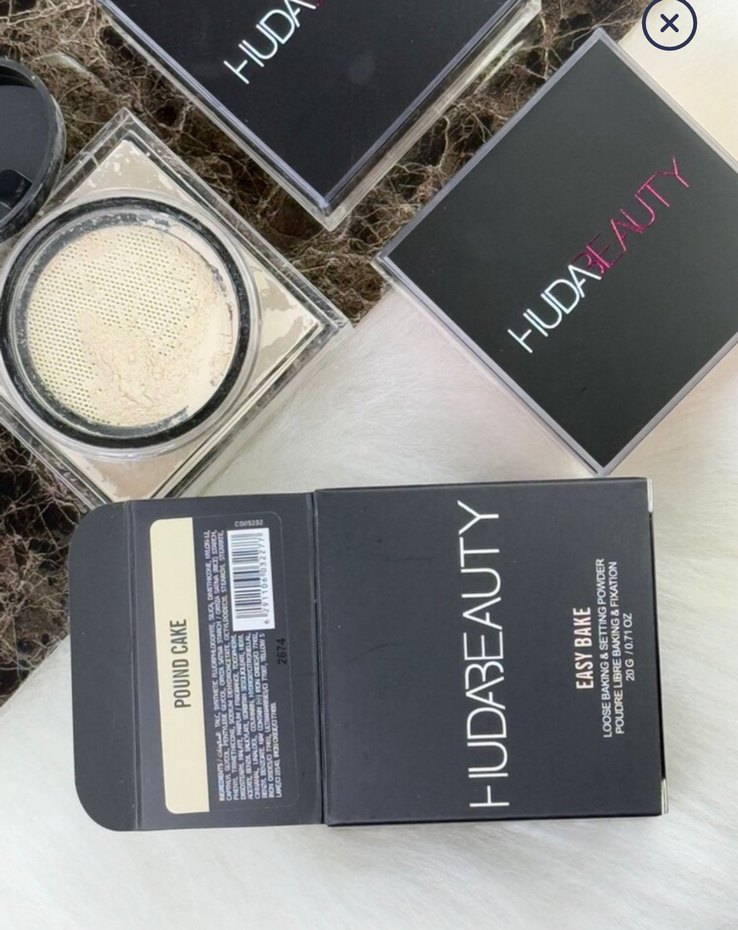 Huda Beauty Easy Bake gevşek sabitleyici pudra, Pound Cake tonunda, mat ve pürüzsüz bir görünüm sağlar. 20g kutuda.