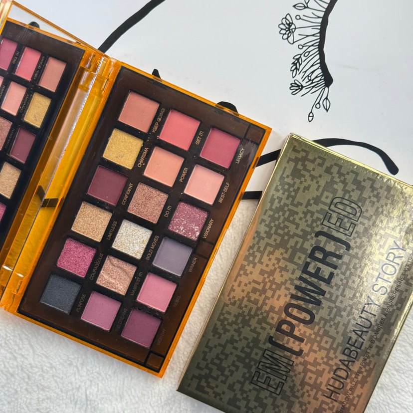 Huda Beauty EMPOWERED far paleti, mat ve ışıltılı bitişlere sahip pembe, mor ve bej tonlarında canlı ve koyu renkler sunar. İTHAL ÜRÜN