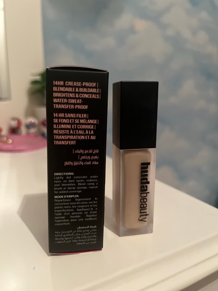Huda Beauty'nin kapatıcısı 14 saat kırışma yapmaz. Aydınlatır, kapatır, suya ve transfere dayanıklıdır.2.1 rengi hediye geldi sephoradan alındı barkodundan da bakabilirsiniz sadece 1 kere kullandım benim cildime hem açık oldu rengi hemde kuru ciltliyim pek anlaşamayız gibi hiç kullanmadan da satmak istedim tertemiz ürün kutusu da mevcut