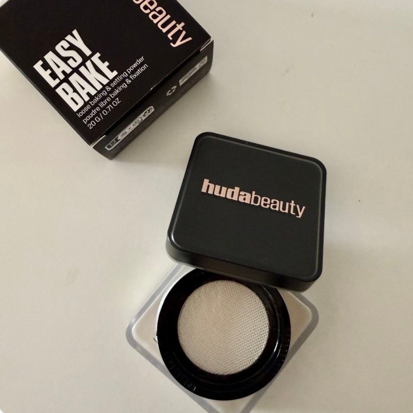 Huda Beauty marka koyu bej renkli, makyaj sabitleme için kullanılan ince yapılı puder.