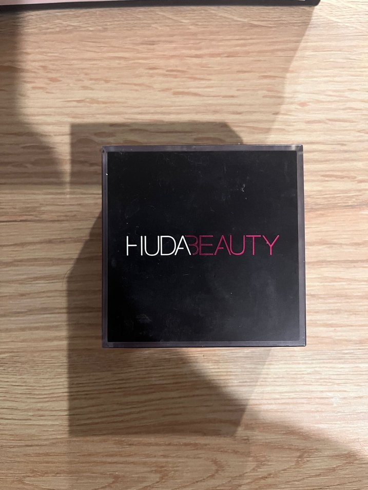 HUDA BEAUTY markalı koyu bej renkte pudra, pürüzsüz bir bitiş sağlar. Kapağında marka logosu bulunan kompakt tasarım. Ürün cildime renk tonu açısından pek uymadıgı için kullanılmadı.