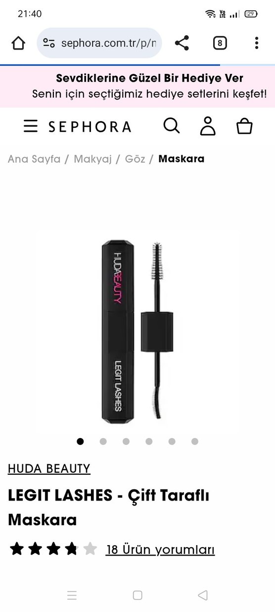 Huda Beauty Legit maskara, siyah renkte, hafif ve canlı kirpikler sağlar. Göz görünümünü doğal şekilde güçlendirir.
