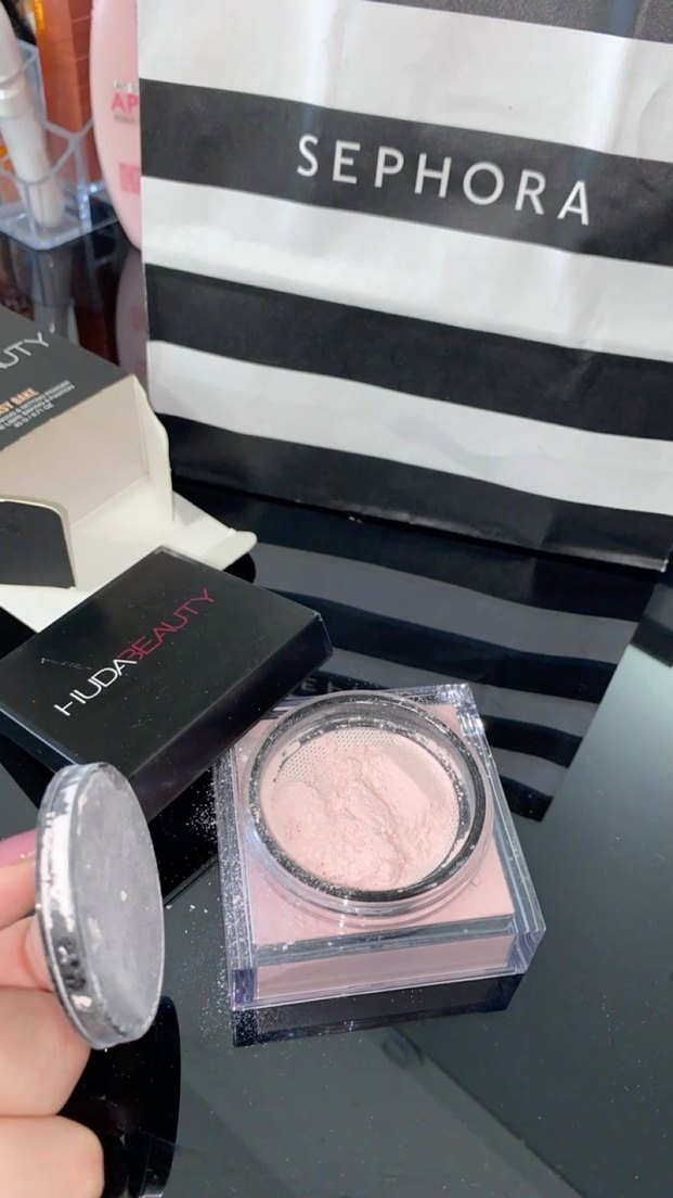 Huda Beauty Cherry Blossom Cake koyu pembe renkte, makyajı sabitleyen ve doğal görünüm sağlayan hafif pudra. Uygulaması kolaydır.