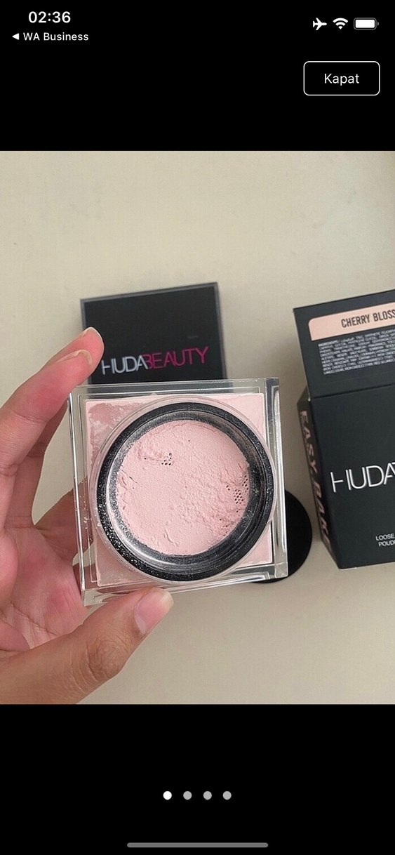 Huda Beauty markasına ait açık pembe renkte, Cherry Blossom etiketli ince dokulu loose pudra.