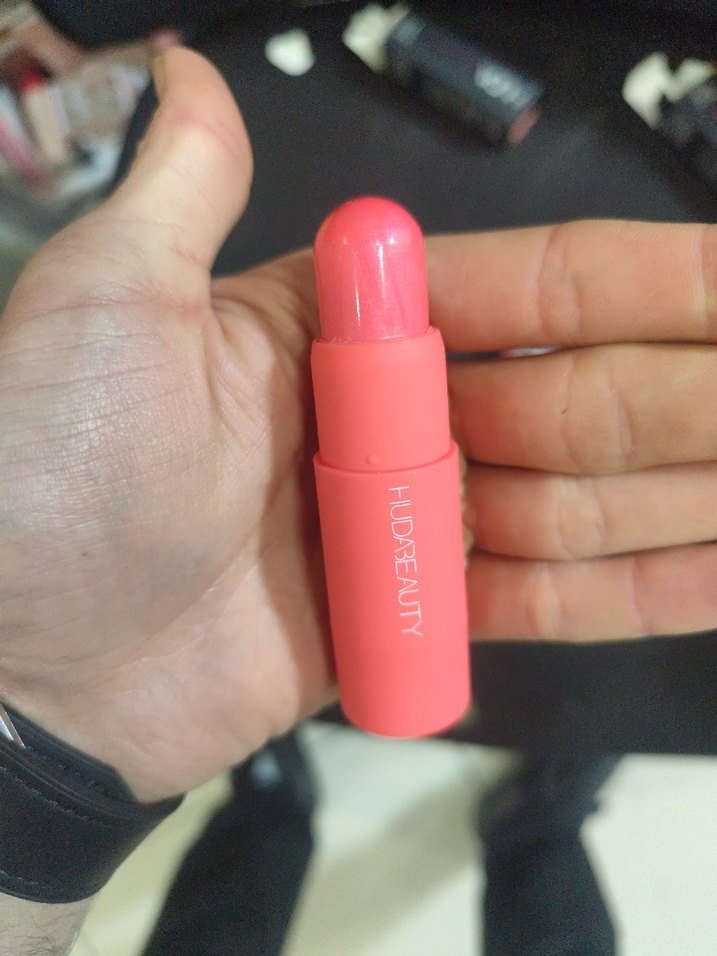 HUDABEAUTY markasına ait pastel pembe renkte allık stick, pürüzsüz ve doğal bir görünüm sağlar. Kompakt ve kolay uygulanır.