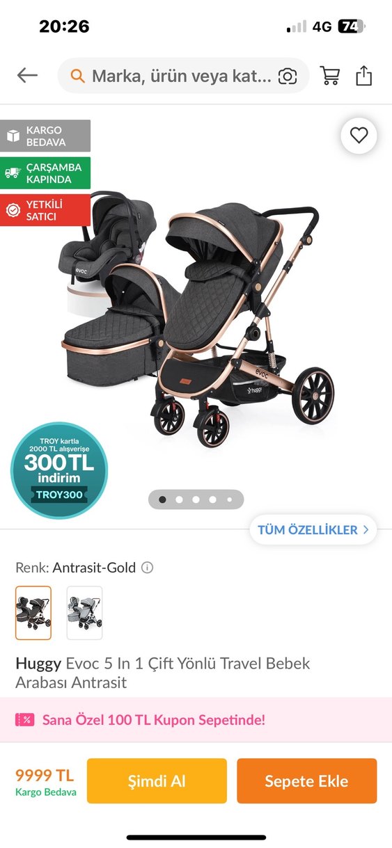Ürün sıfırdır sadece pusetini bir kere kullandık başka bir bebek arabası hediye geldiği için onu kullandım portbebesi hiç kullanılmadı sıfır kutusuyla birlikte ihtiyaç fazlası ürün bej rengi alıcısına hayırlı olsun