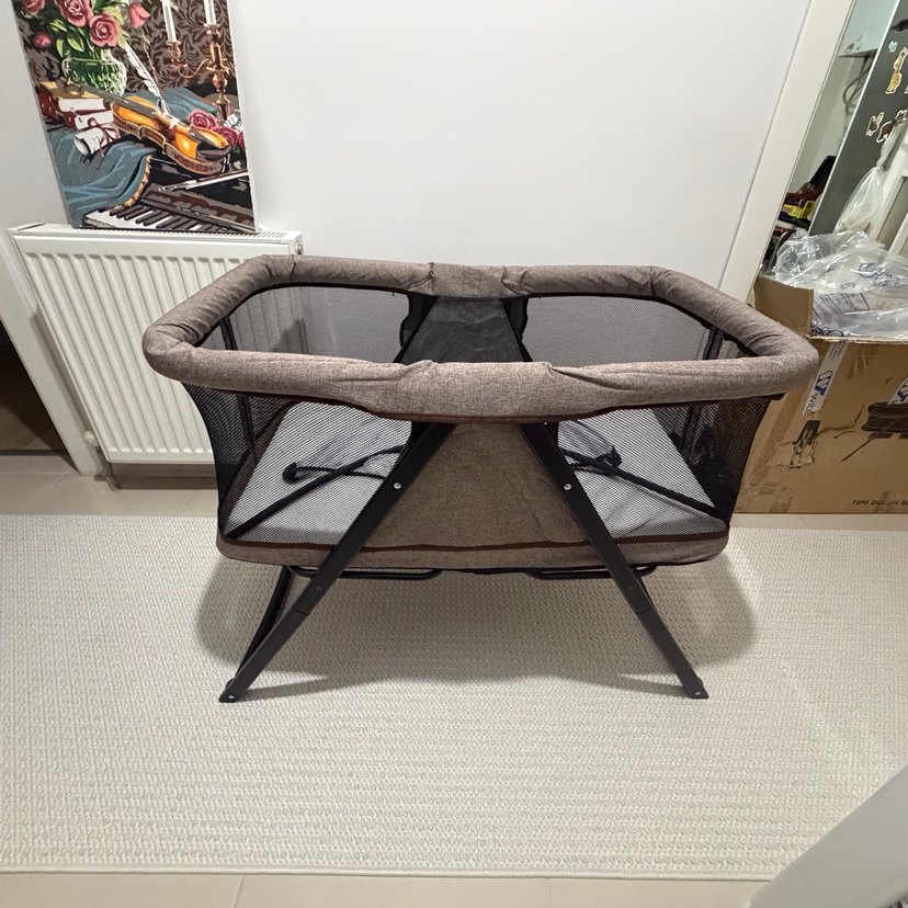 Huggy Handy Pratik Alüminyum Katlanabilir Portatif Beşik - Bej (Çok az kullanıldı, Çok Temiz) Bebeğimiz için aldığımız Orijinal Huggy markalıdır. Katlanır alüminyum bebek beşiği rahat katlanabilir tasarım Dış etkenlerden koruyan cibinlik ve ön cep Ayrıca yatağın bir kısmı kaldırılıp reflü yatağına dönüştürülebilir. Kolay taşınır. Kurulu ölçüsü 90 x 58 cm yükseklik 70 cm Ağırlığı 6,2 kg.