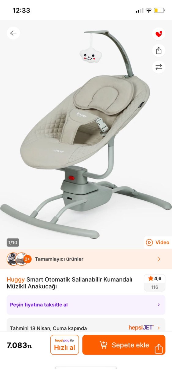 Bej ve gri tonlarda, kumandalı otomatik sallanma ve müzik özellikli Huggy ana kucağı.kurdum 2 kere denedim bebeğim sevmedi tekrar aynı şekilde kaldırıp kutuladım tertemiz duruyor