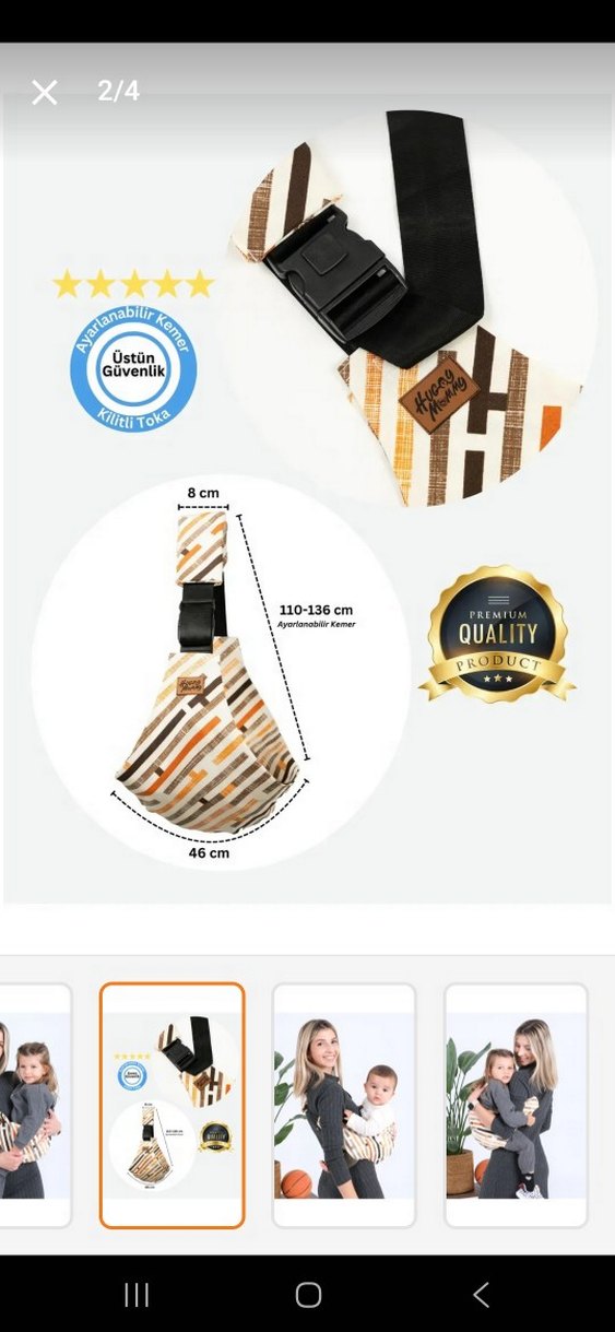 Bebek sling 1 kez kullanildi, yıkandi. Bebegim icinde durmayi sevmedi