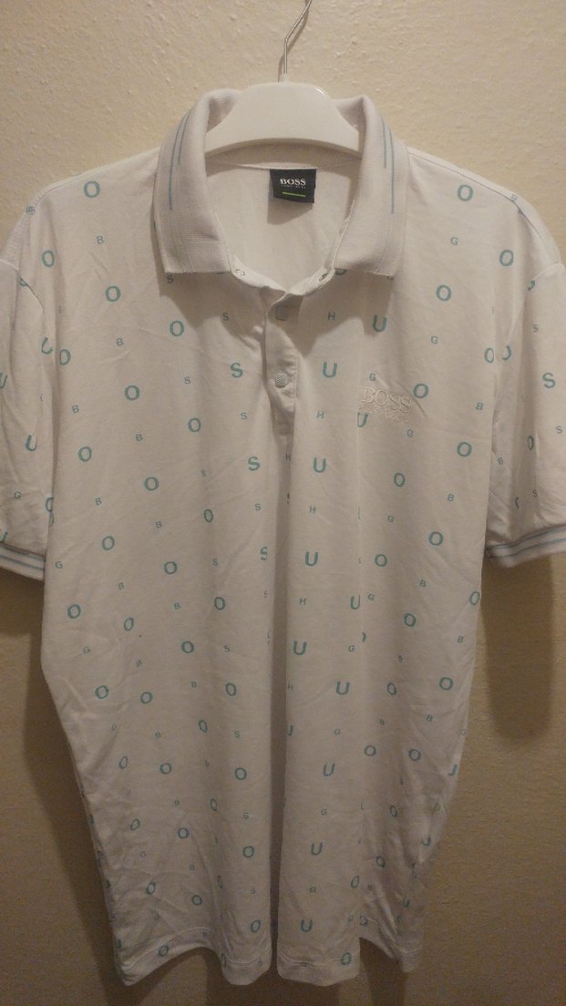 Beyaz pamuk erkek polo tişört, kısa kollu ve yakalıdır. Düğmeli ön kısmı ve bol kesimiyle rahat sokak stiline uygundur. Pastel renkli harf desenleri bulunur.