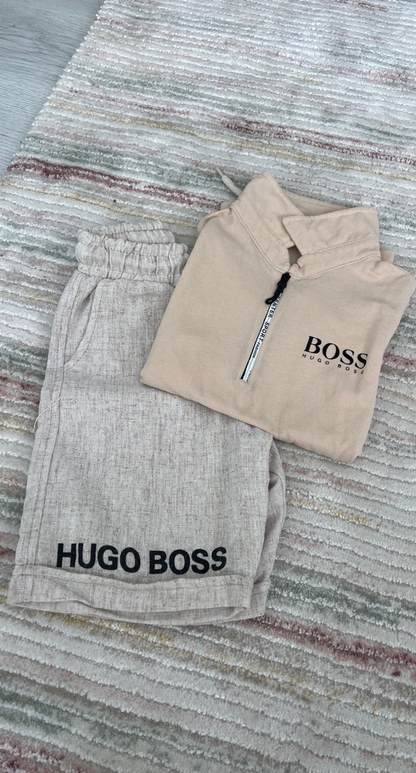 Erkek çocuklar için keten şortlar, bol kesim ve nakış detaylarıyla rahat bir şıklık sunar. Lastikli bel kısmı konfor sağlar. Hugo Boss logosu şıklık katar.