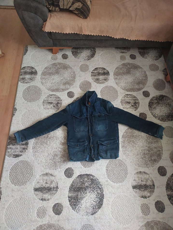 Lacivert denimden yapılmış, , bol kesim, notched yaka ve uzun kollu erkek ceket. Günlük kullanıma uygun rahat bir sokak stili sunar. kusurları fotoğraflarda gösterildi