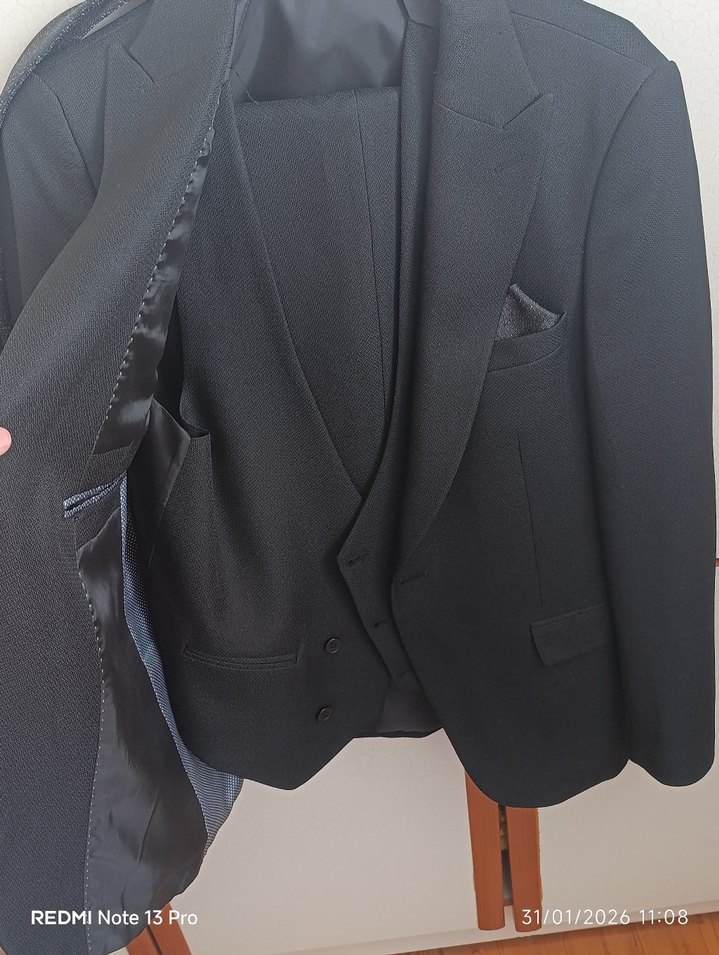 9-10 yaş siyah erkek çocuk takım elbise iki gece kullanıldı giyilmeden kaynaklı resimde olduğu gb pantolon paçası ve bi kaç yerinde ip çekilmesi var hafif sorun etmeyen olursa bu şekilde satışta