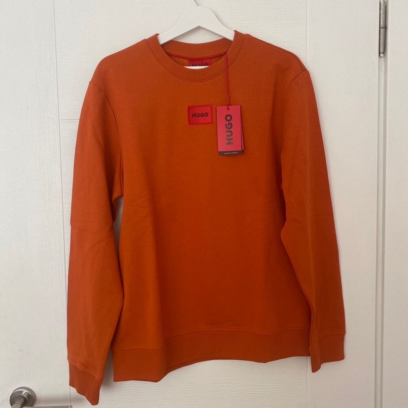 HUGO marka, turuncu renkli, yuvarlak yakalı ve uzun kollu erkek sweatshirt. Yumuşak kumaştan, rahat ve şık bir tasarıma sahip.