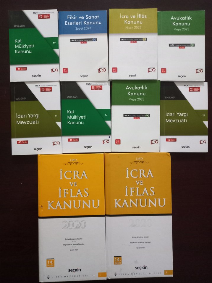 Toplam 10 Adet Kanun Toplu Şekilde Hepsi Sıfır Yazılı Çizili Yer Yok Teklif Verebilirsiniz Aklınızdan Geçen Fiyatı Yorumlardan Yazabilirsiniz Kat Mülkiyeti Kanunu 2024 İdari Yargı Mevzuatı 2024 İcra Ve İflas Kanunu 2023 2020 Fikri ve Sanat Eserleri Kanunu 2023 Avukatlık Kanunu 2023 Saçkin Yayıncılık Libra Mevzuat Dizisi Hukuk Cep Kitapları Dizisi Hukuk Kanunlar