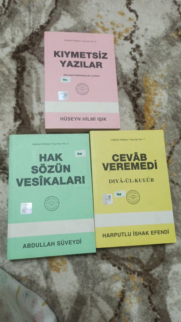 Hüseyin Hilmi Işık, Abdullah Süveydî ve Harputlu İshak Efendi'nin yazdığı üç hukuk kitabı: Kıymetsiz Yazılar, Hak Sözün Vesikaları ve Cevab Veremedi.