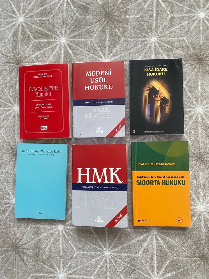 HMK, sigorta hukuku, medeni usul, ticari işletme hukuku ve idare hukuku konularını kapsayan hukuk kitapları seti.