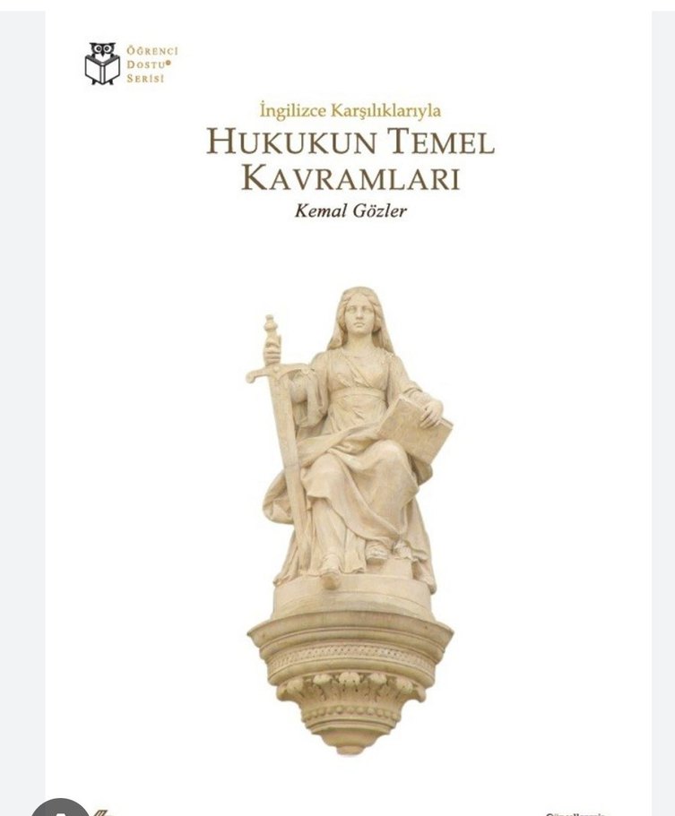 Kemal Gözler'in "Hukukun Temel Kavramları" kitabı, İngilizce karşılıklarıyla temel hukuk kavramlarını içerir. Kapakta beyaz bir figürin yer alır.