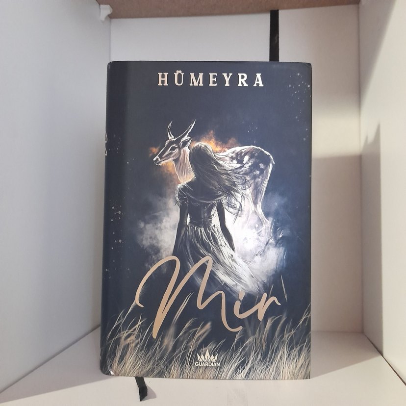 Hümeyra'nın "Mir" adlı romanı, mistik kapak tasarımıyla kadın ve geyik figürlerini karanlık bir atmosferde sunuyor.