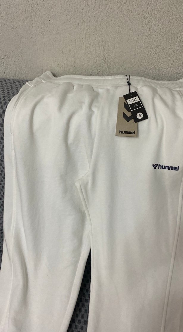Hummel markalı, pamuklu kumaştan yapılmış bol kesim beyaz erkek eşofman altı. Düz ve sade tasarımıyla şık ve rahat bir görünüm sağlar. ️