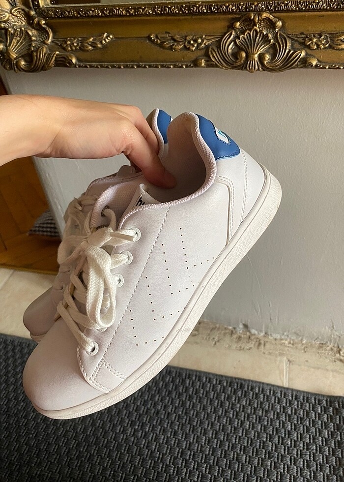 hummel busan spor ayakkabı unisex 37 numara. orijinaldir ürünü kendi mağazasından aldım. tek kusuru 5. fotoğrafta dolapta durduğu için bez kısmı sararmış ama giyildiğinde belli olmuyor. 2 kez giydim sadece çok fazla ayakkabım var hatta aynısından 1 tane daha var o yüzden satıyorum güzel bi ayakkabı klasik.