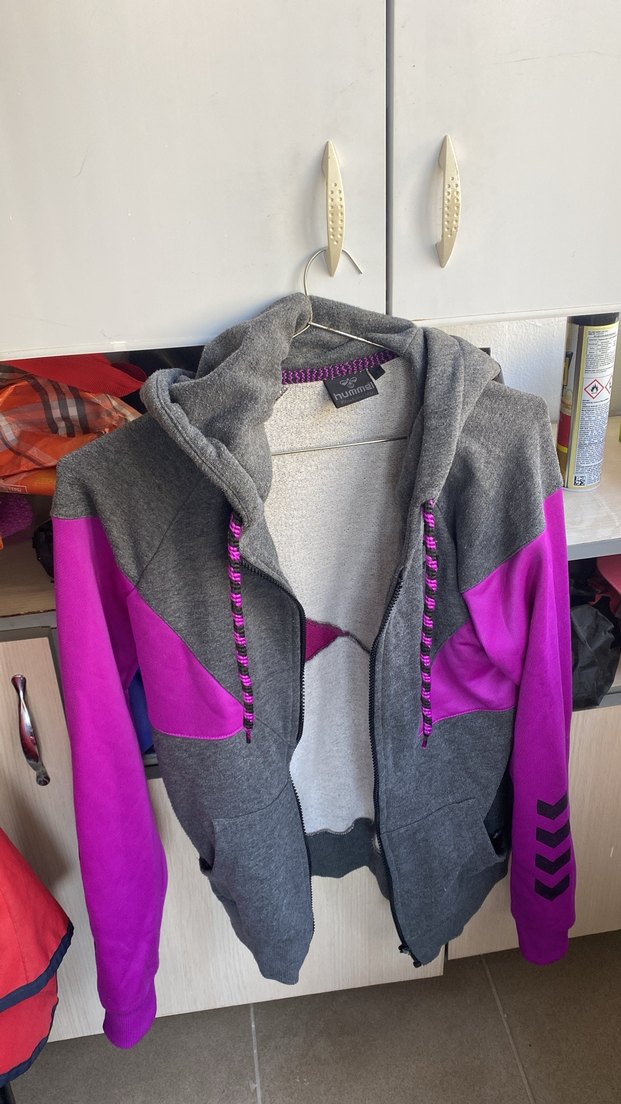 Hummel Gri ve Mor Fermuarlı Kadın Spor Ceket