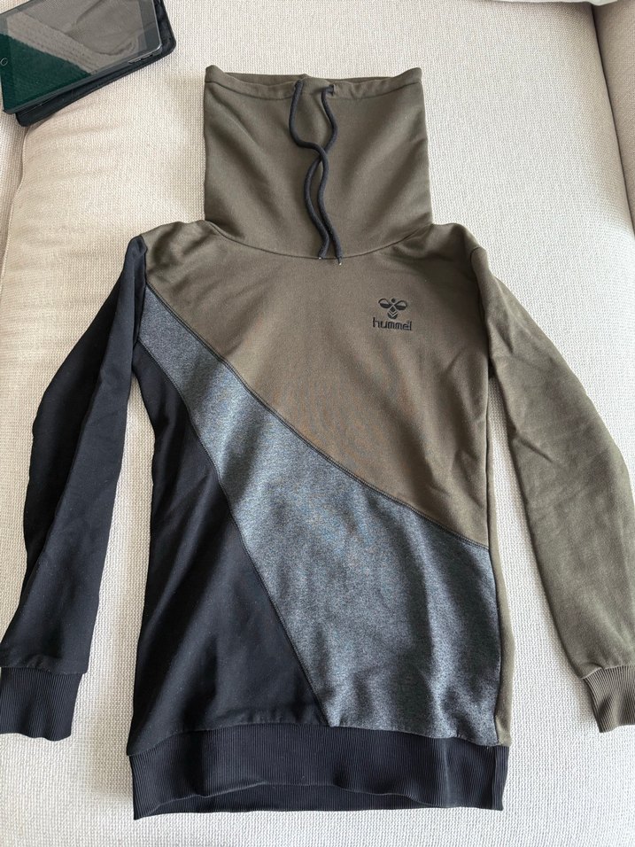 Hummel markalı kadın sweatshirt, yarım yüksek yakalı ve uzun kolludur. Gri renkli, yumuşak fleece kumaştan, rahat kesim ve renk bloklu tasarıma sahiptir.