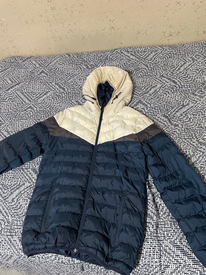 Lacivert ve beyaz renk kombinasyonuna sahiptir. Soğuk havalarda sıcak tutan dolgu yapısı vardır. Önden fermuarlı ve fermuarlı ceplidir. Günlük kullanım için rahat ve şık bir modeldir.