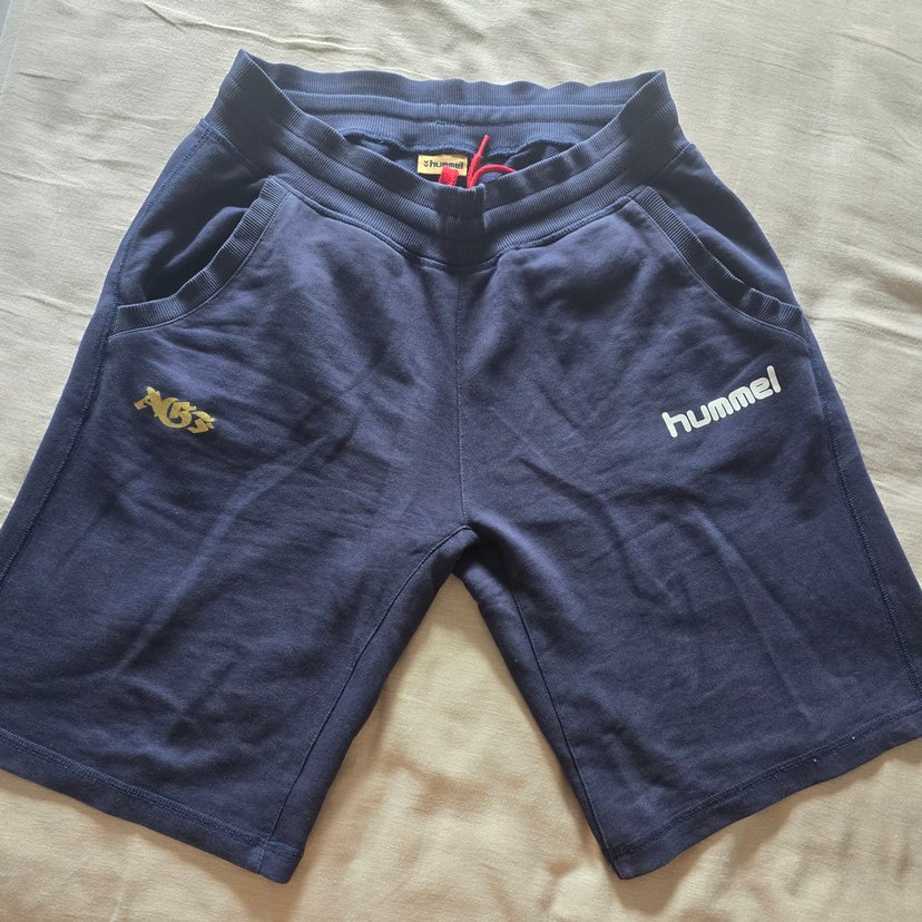 Hummel marka, lacivert renkli, rahat kesim ve midi boy erkek şort. Yumuşak ve sıcak tutan kumaştan, yanlardan cepli ve baskılı detaylarıyla spor ve sokak stili için uygun. arka cep kısmında küçük deformesi vardır. M beden ve L bedene uygundur.