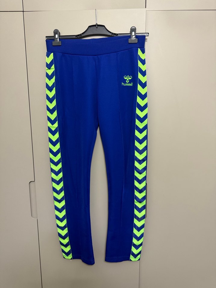 Hummel marka, neon yeşil şeritli mavi renkli, bol kesim kadın eşofman altı. Normal midi boyda, fermuarlı ve sentetik kumaştan üretilmiştir. Spor ve günlük kullanıma uygundur. ♀️