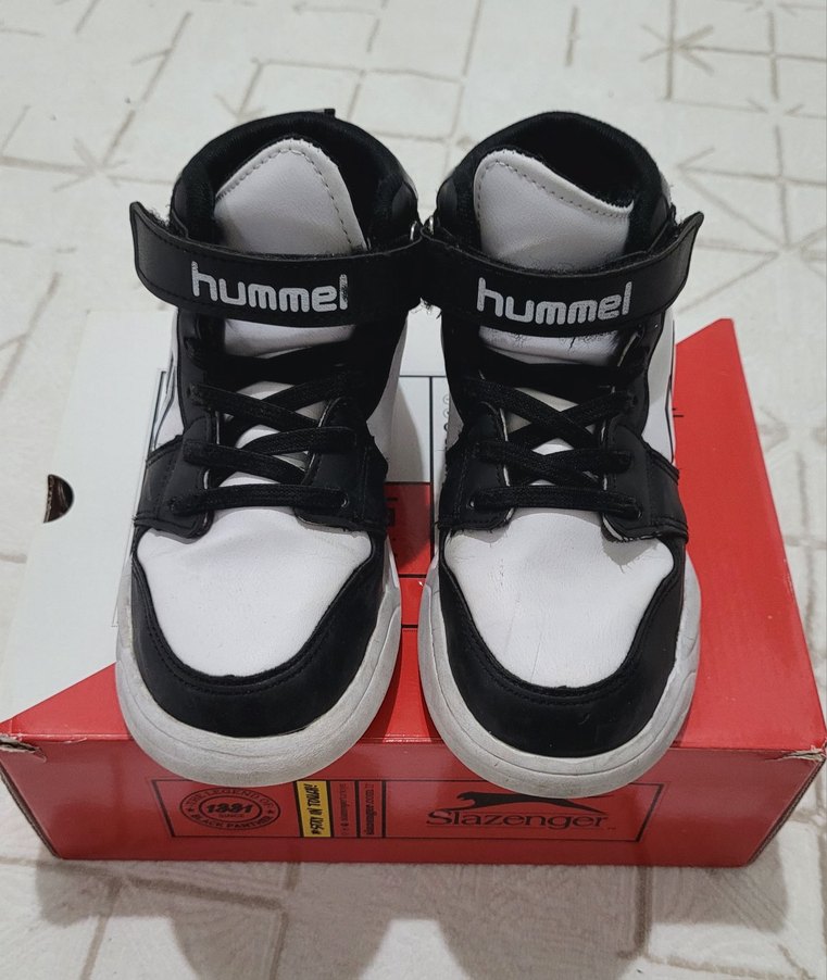 Hummel marka, renkli baskılı ve cırt cırtlı , kauçuk tabanlı erkek çocuk spor ayakkabısı. Sokak stiline uygun rahat bir modeldir. Fotoğraflarda görüldüğü gibidir. Bariz kötü bir defosu bulunmamaktadır. 31 numaradır.