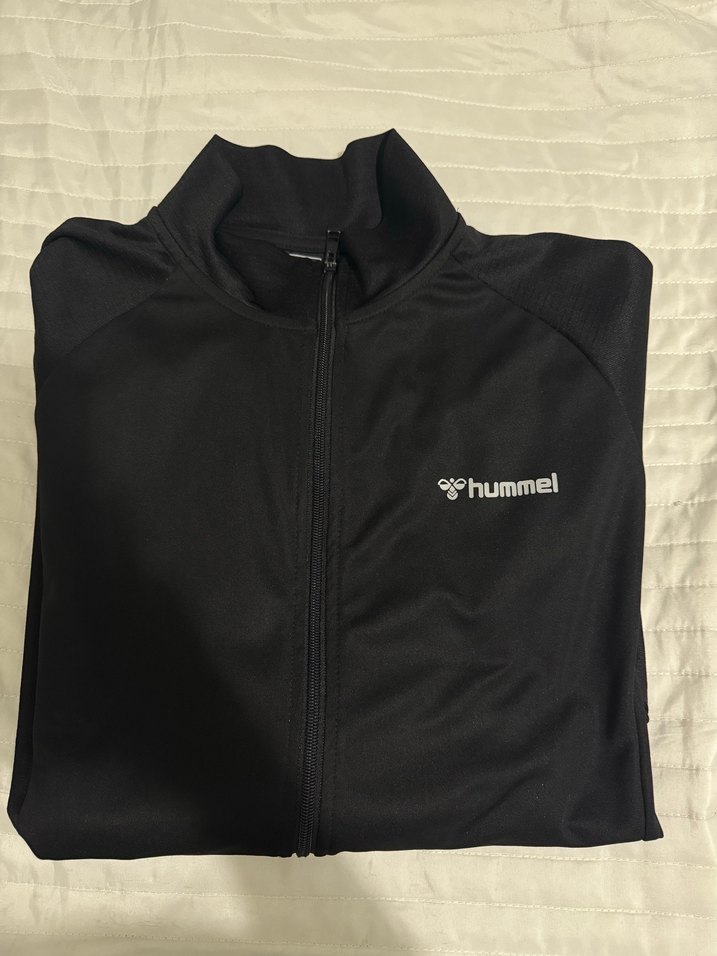 Hummel markalı, fermuarlı siyah erkek ceket, yüksek yakalı ve uzun kolludur. Yumuşak ve sıcak kumaştan yapılmıştır, günlük ve sokak stiline uygundur.