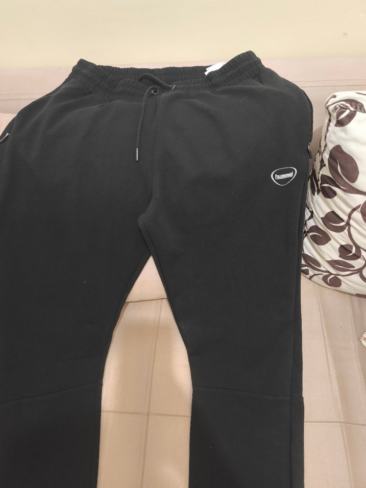 Hummel marka siyah eşofman altı, bol kesim, fermuarlı cepler ve yumuşak, sıcak kumaş ile günlük kullanım için uygundur. l beden orjinal