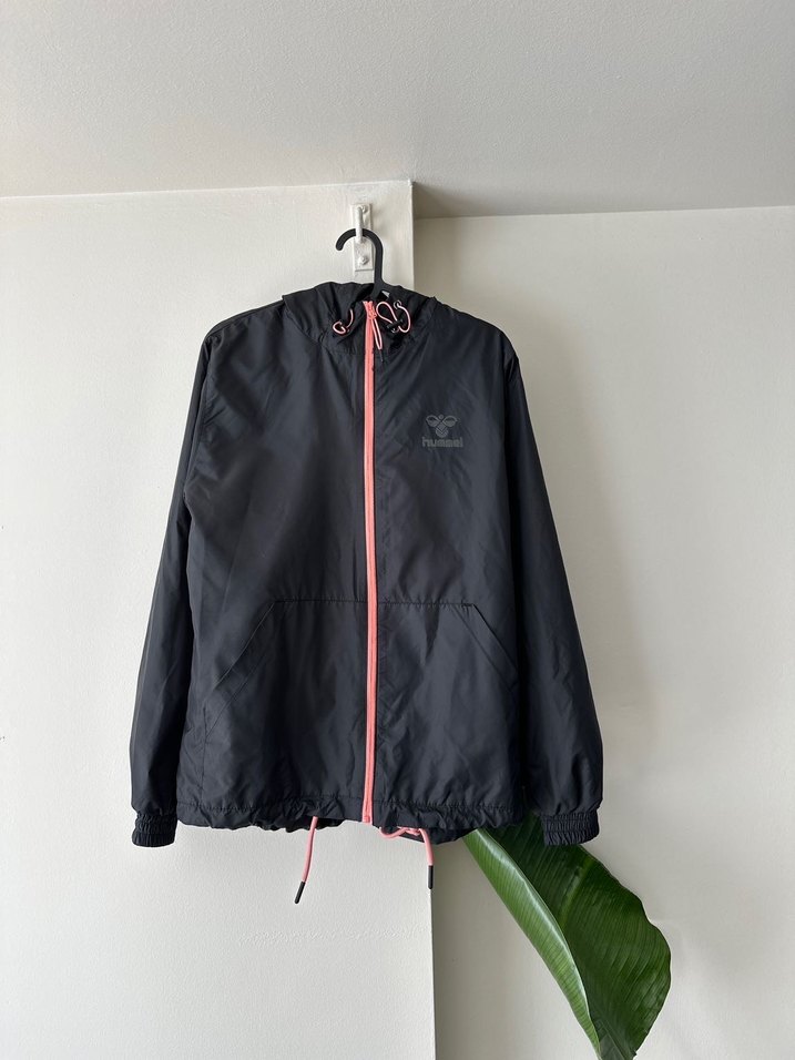 Hummel marka siyah rüzgarlık, S beden olmasına rağmen oversize kalıptadır. Kapüşonlu, fermuarlı ve çok hafif. Günlük ya da spor kullanım için ideal, temiz ikinci el üründür. Sadece 2 kez kullanıldı.
