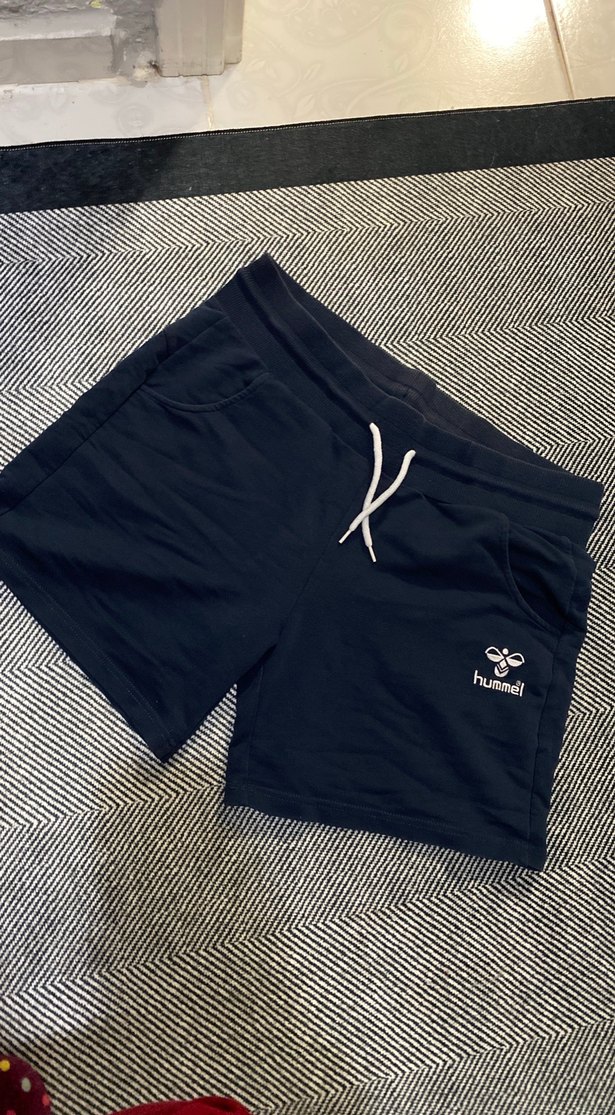 Hummel marka siyah pamuklu şort, bol kesimi ve baskılı tasarımıyla sportif ve rahat bir stil sunar.