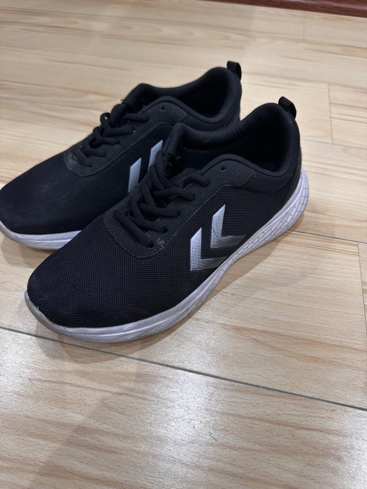 Orijinal Az kullanılmış Hummel marka Elastik detaylı, ince topuklu siyah kadın spor ayakkabısı. Kauçuk tabanlı, spor ve günlük kullanıma uygun.