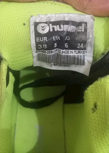 cocuguma aldimkalibi biraz kucuk.Hummel markalı, renkli baskılı, spor ayakkabı 2kez giyildi.sadece ip gecrme yerinde ilk ust nokta yirtildi onun haricinde hicbirseyi yok.