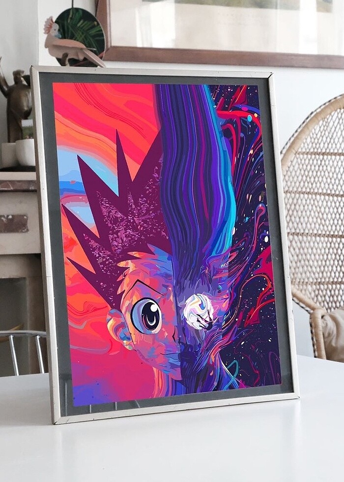 ÜRÜN AÇIKLAMASI; -(A3) 30 X 42,0 СМ (ÇERÇEVESİZ) boyutundadır - Ürünlerimizin hepsi 300gsm kalınlığında ve premium inci kağıtlara basılarak oluşturulmakta. En kaliteli püskürtmeli dijital yazıcılarda oluşturularak olabilecek en canlı renk paletleriyle ortaya çıktı. İllüstrasyonla oluşturulan bu tablo, "Hunter x Hunter" adlı ünlü manga ve anime serisinin önemli bir karakteri olan Gon Freecss'in stilize bir tasvirini içerir. Gon, serinin ana karakterlerinden biri ve macera dolu dünyasının merkezinde yer alır. Tablonun merkezinde, Gon karakterinin estetik bir tasviri bulunur. Bu tasarım, serinin macera, dostluk ve keşif temasını yansıtır. Renk paleti, serinin farklı atmosferlerini ve Gon'un karakterinin gelişimini yansıtır.